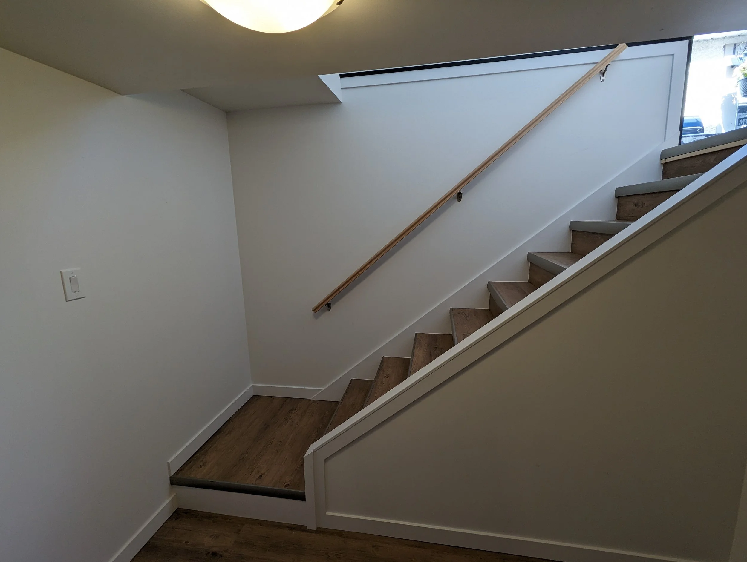 After fully gutting the space we installed all new electrical, plumbing, flood prevention back water valves and sump pit.